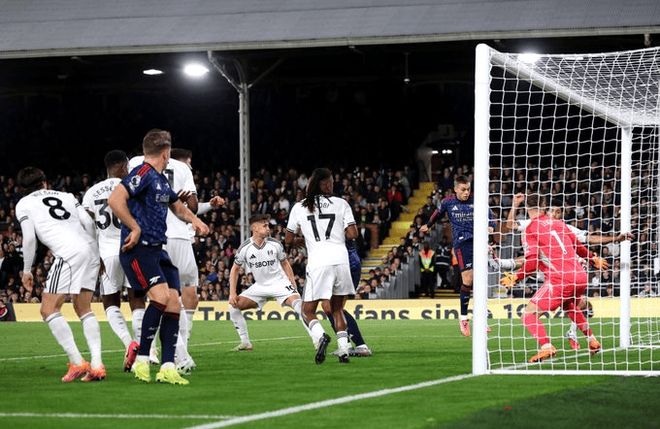 第58分钟,阿森纳角球机会,萨卡主罚,加布里埃尔头球摆渡,特罗萨德抢点破门,阿森纳1-0领先富勒姆。